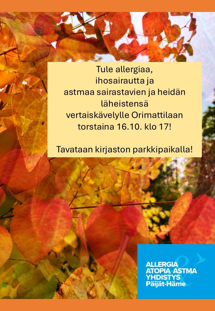 Huomaathan, että tänään 6.10. allergiaa, ihosairautta ja astmaa sairastavien vertaisilta on klo 18.15-19.15 ja marraskuussa palataan jälleen vanhaan aikaan klo 17-18. Marraskuun vertaisilta on 3.11.…