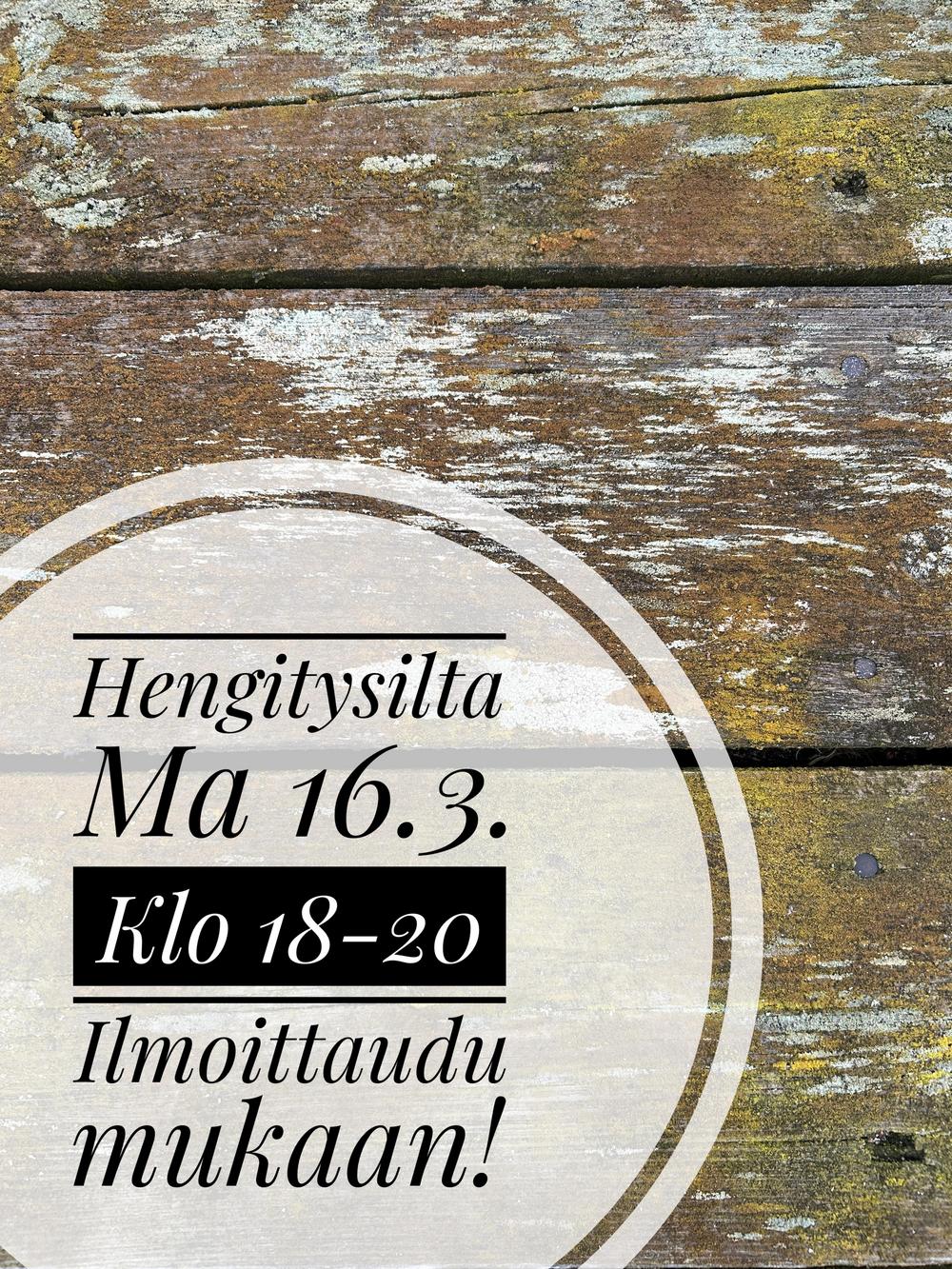 Hengitysiltaa vetää fysioterapeutti Janne Raukola. Hengitysillassa tutustumme hyvinvointia tukeviin hengitystapoihin ja hyvän hengityksen tunnusmerkkeihin. Kokeilemme yksinkertaisia, helposti omaksuttavia, kaikille soveltuvia harjoituksia, joilla voidaan rauhoittaa hermostoa, lievittää hengityssairauksiin liittyviä oireita ja edistää terveyttä.