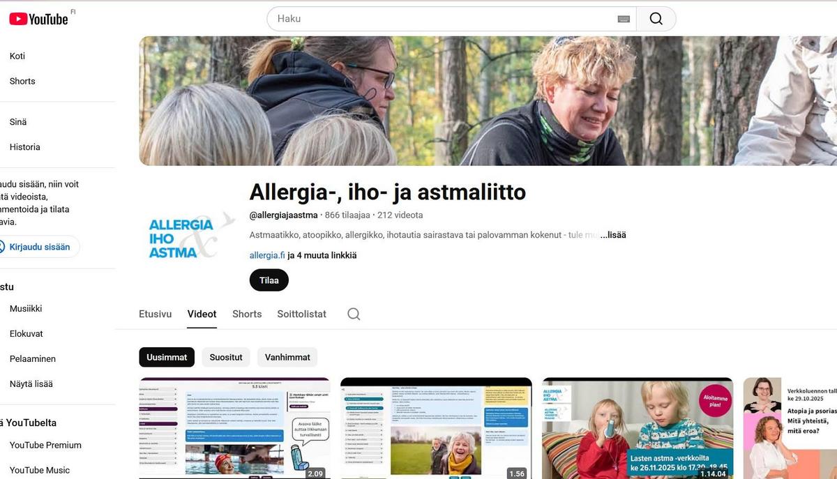 Voit käydä katsomassa Allergia-, iho- ja astmaliiton Youtube-kanavalta aiempia tietoiskuja ja verkkoiltoja. Kaikkia verkkoiltoja ei aina tallenneta, mutta tallennetut löydät kyllä kanavalta.